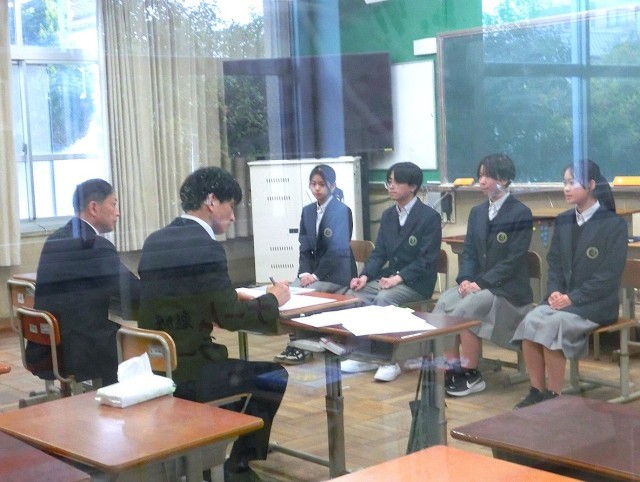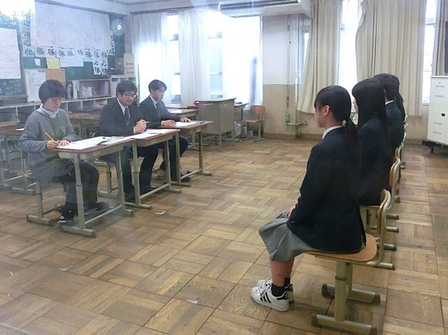 3年生では、受験に向けて面接練習をしました。面接官は校長先生と他学年の先生が担当、本番さながらの面接に、生徒たちは緊張を持って臨んでいました。