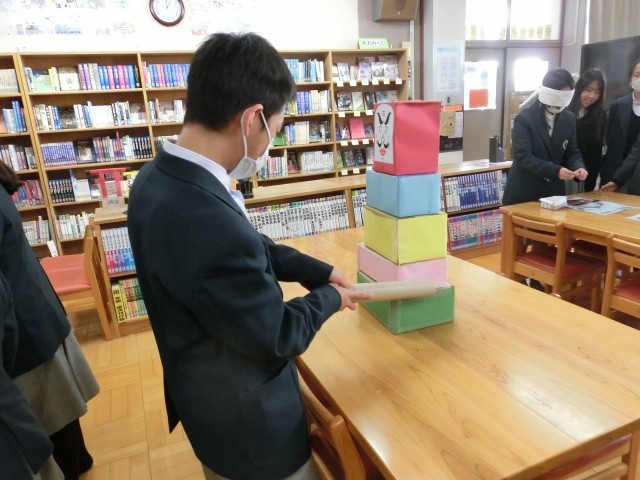 安祥寺中学校図書館恒例の「ブックフライディ(Book Friday)」。新しい年の最初は「新春初笑い企画」としてお正月遊びが用意されました。