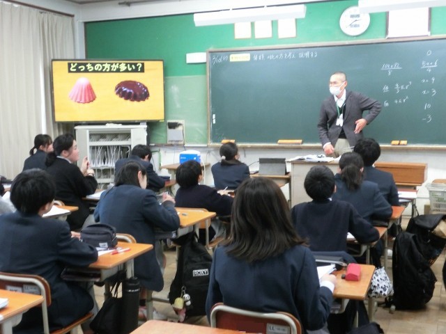 1年生の数学科の授業では、「体積の比べ方」について学習しました。(写真上)