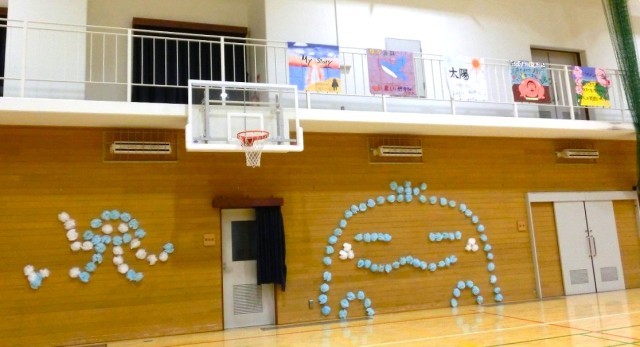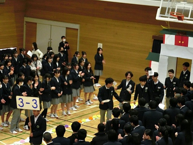 プラカードを先頭に「安中城」の門をくぐって3年生が入場すると、会場は大きな拍手に包まれ「3年生を送る会」がスタートしました。
