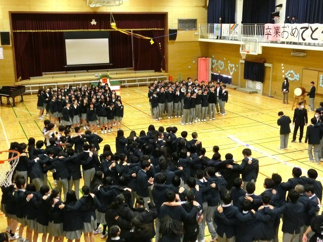 そして、この学年恒例の応援団。体育祭の応援団長を中心に力強い太鼓とともに、全校生徒を巻き込んで、これからの安中の前途を祝しての応援を行いました。