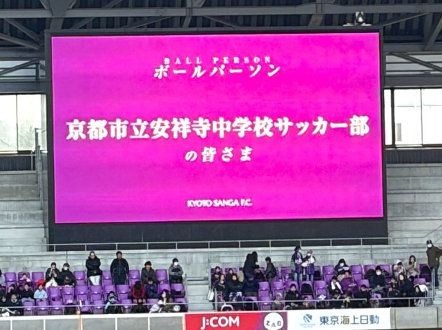 3月14日(土)14:00から亀岡にあるサンガスタジアムで行われた「J1百年構想リーグ 地域リーグラウンド第6節 京都サンガvs.セレッソ大阪」の試合に、サッカー部がボールパーソンとして参加しました。