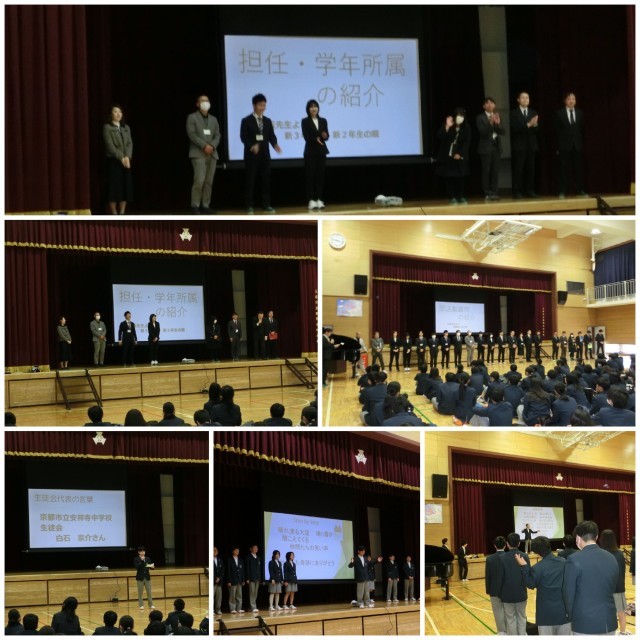 また、着任式後は始業式を行い、新担任・副担任の発表。