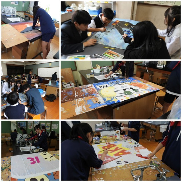 懇談時間を利用し、全学年で「学級旗」の制作を行っています。学級旗は学校行事のあらゆる場面で活躍し、学級のシンボルです。