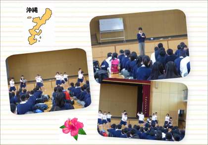 中学校生活の思い出の一つに残る楽しみにしていた修学旅行の出発が明日になってきました。今日は,事前指導ということでこれまで準備をしてきたことの最終確認を行いました。6限は,体育館で,学年の代表の人たちが伊江島での退村式で披露する「京炎そでふれ」を学年の人たちに見てもらいました。2年生の体育で取り組んでいたものですが,修学旅行での感謝の気持ちを現地の民家に方々におくるものです。当日は,学年のみんなで,「丸竹夷に押御池・・・・」と歌えるといいですね。