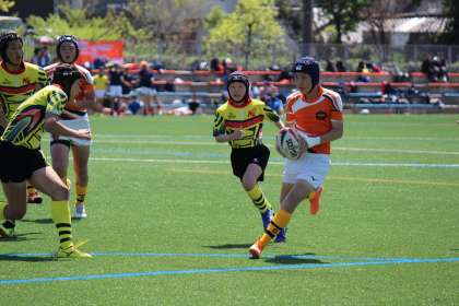 開始早々,トライを決められ,苦しい立ち上がりでしたが音羽中学校も反撃のトライ。前半はリードを許したまま後半へ。
