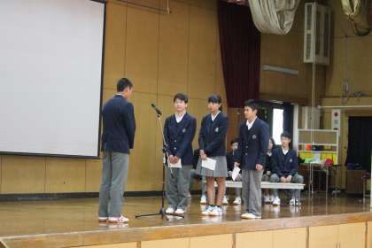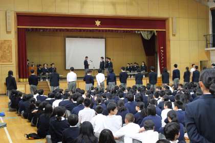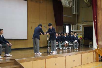 本日の6限体育館にて,生徒会各種委員への認証式が行われました。各委員になった人は自覚と責任感を持ってより良い学校作りを目指してください。また,委員以外の人も委員の人をサポートして,みんなの力で,「音羽中学校に来て良かった」と思える学校にしましょう。