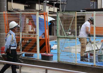 プール東壁の改修工事