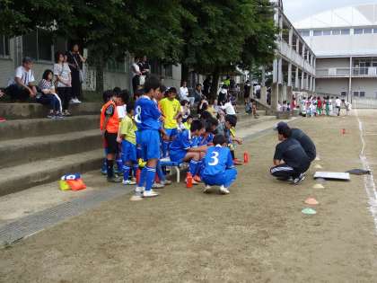 7月14日(日)サッカー部の夏季大会1回戦が行われました。対戦相手は嵯峨中学校。前半に1点を先制し,ハーフタイムへ。後半にも追加点を取り,2対0で2回戦へ進出しました。