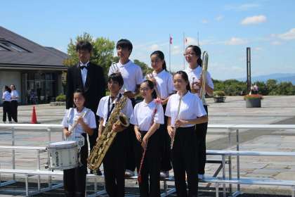 8日(日)に山城総合運動公園(太陽が丘体育館)にて第32回京都府マーチングコンテストが行われ音羽中学校の吹奏楽部も参加しました。体育館内での撮影が禁止でしたので,息の合った動きや音色の場面をお伝えできないのが残念ですが,素晴らしい演奏をし見事銀賞に輝きました。おめでとう。