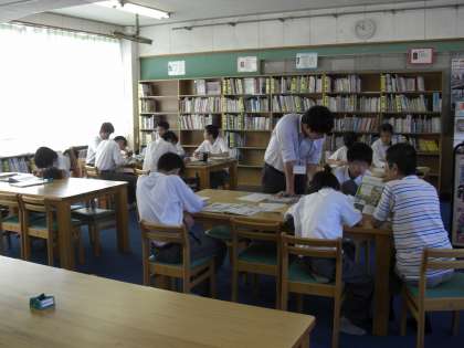 9日(月)に10組は図書館で授業を行いました。普段の教室と勝手は違ったようですが,みんな,本で調べての学習に一生懸命取り組んでいました。