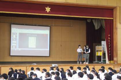 7日の行われる文化発表会に向けて,2年生は,本日7限の総合の時間に学年の中での発表会を行いました。