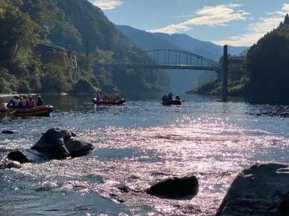 高知県ハッピーラフトに到着です。吉野川がとてもきれいです。ウェットスーツに着替えて、これからいよいよラフティングです。