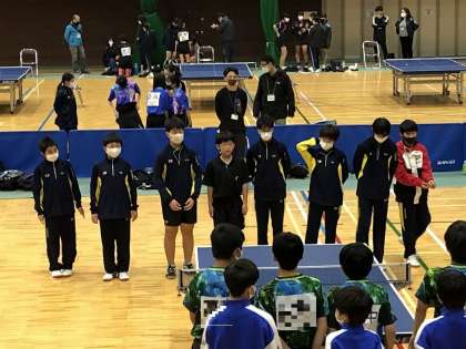 卓球の秋季大会団体戦が1日,ハンナリーズ体育館で行われました。予選リーグを突破し,決勝リーグに臨みましたが,1位通過できず決勝トーナメントには進めませんでした。ここからの努力でどんどん力をつけていってください。