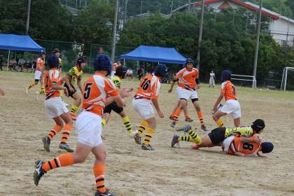 7月4日(日)にラグビー全国大会予選の決勝トーナメント1回戦が西陵中で行われました。長岡第二中を相手に開始早々トライのチャンスが訪れましたが得点をあげることが出来ず,逆に得点を取られ,前半をリードされて展開となりました。