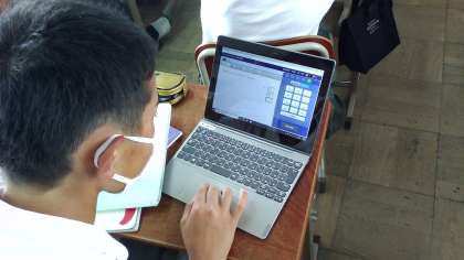 7月よりGIGAタブレットでデジタルドリル「ミライシード『ドリルパーク』」の活用がスタートしました。デジタルドリルは,漢字,計算,基礎応用の問題等,生徒一人一人に合ったペースで学習に取り組むことができます。