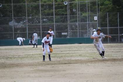 10日(土)に軟式野球の夏季大会が始まりました。昨年までは合同チームでの出場でしたが,新入生が加わり,今年度からは単独チームでの出場となりました。