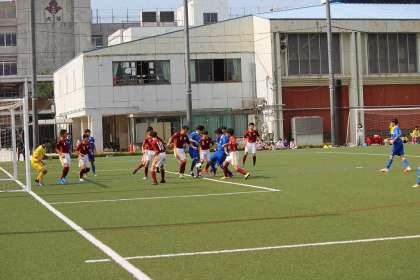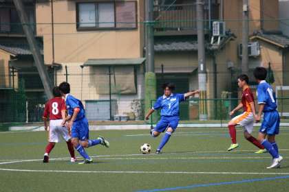 サッカーの夏季大会が11日(日)大谷中学校グランドで大谷中と対戦しました。開始早々,先制点をあげ上々の滑り出し。しかし,その後同点とされ,前半は3対2で折り返しました。
