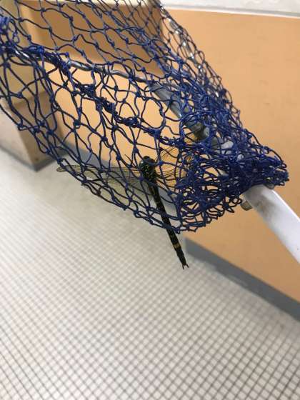 今日,校長室に扉を開けていると突然バサバサッと珍入者がありました。なんと大きなトンボが入ってきたのです。何とか捕獲し無事に外へ逃がしてあげました。