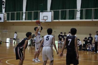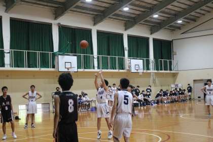 第1ピリオドは相手の正確でスピードのある展開についていけず,10点ほどリードを許し苦しい試合の入りとなりました。徐々に落ち着きを取り戻し,第2ピリオドから追上げ,第3ピリオドにはついに追いつきました。最後の第4ピリオドはシーソーゲームでどちらも全力での戦いです。残り1分を切り,最後にリード。そのまま逃げ切り見事に勝利をつかみました。3年生にとっては最後の大会です。対戦相手の思いも受け取り上位を目指してください。