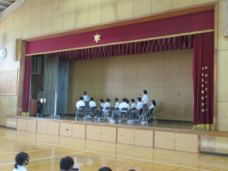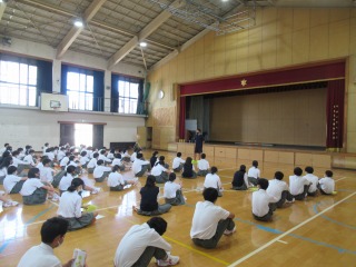2年生の学年集会では,各クラスの1学期の振り返りを,「オリジナルの劇」を交えて発表しました。初めての試みでしたが,少ない時間の中で練習を重ねて発表しました。どのクラスも,クラスのカラーが出た良い発表となりました。