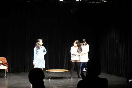 演劇部の合同発表会が27日(火)東山青少年活動センターで行われました。コロナ感染予防のため,マスク着用での発表会でしたが,各校工夫を凝らしての演技でした。