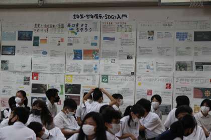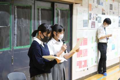 学年別での開催となりました文化発表会。まずは,1年の部からのスタートです。2,3年生の発表をビデオでの観賞する形でしたが,しっかり内容は伝わってのではないでしょうか?1年生の展示作品も掲載してあります。