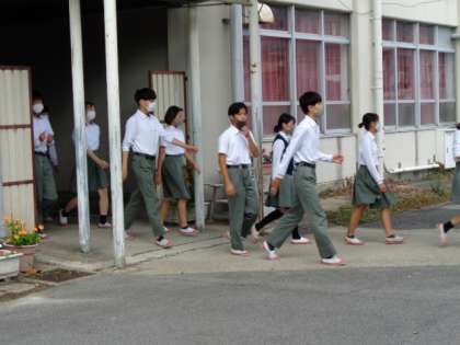 本日,2学期の避難訓練を行いました。今回は地震・火災ではなく,水害・土砂災害を想定しての訓練です。下層にいる生徒は体育館へ避難,上層は待機等,いつもと違った訓練となりました。常に備えあれば憂い無し。一人一人が意識を高めていきましょう。