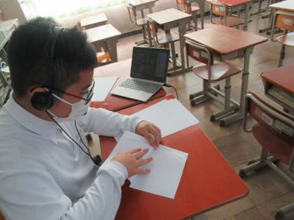 後半は,「よく飛ぶ紙飛行機を作ろう」という課題をもとに,他校の生徒とオンラインで交流しながら,課題の解決に向けて,探究活動を行いました。