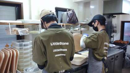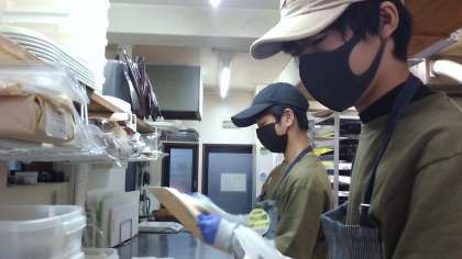 こちらはお客様が使うトレーを拭いているようです。パン屋さんでもパンを作るだけなく,いろいろな仕事がありますね。