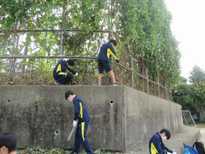 グラウンド側にたくさんの草が生い茂っていましたが,みんなが一生懸命に活動をしてくれましたので,随分とすっきりしてきましたよ。
