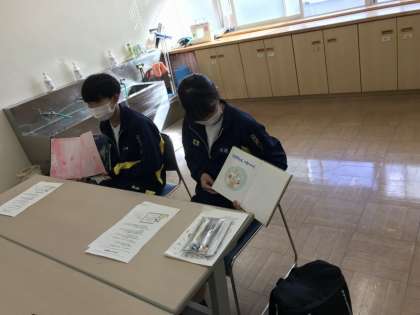 右の写真はこどもみらい館です。絵本の読み聞かせの練習をしています。明日の本番も頑張ってくださいね。