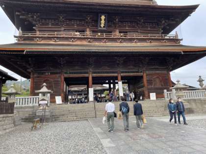 クラスで写真撮影後、善光寺の境内を歩きます。