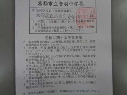 本日,公立中期選抜の受検票を各高校から受け取りました。午後に受検生徒に手渡しましたので,無くさないように大切に受検日まで保管しておいてくださいね。