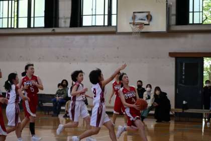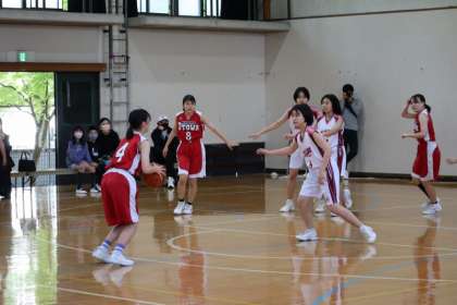 翌5月1日(日)、北野中学校にて2回戦が行われました。一つ一つていねいにボールをつなぎ、協力して得点を重ねていきました。結果は47対39で音羽の勝利。今までの練習の成果を出し切った結果です。