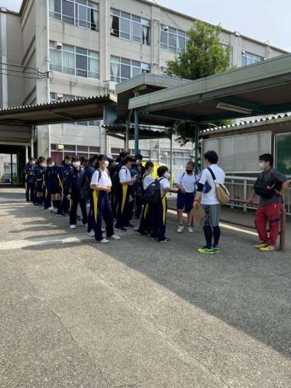 本日1年生は、牛尾山への校外学習を実施します。各教室で健康観察をした後、クラスごとに時間差をつけて、学校を出発しました。1組から5組まで、すべてのクラスが元気に出発しました。班別活動が始まるローソンまで、歩いていきます。