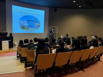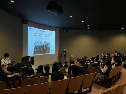 どのクラスも真剣に講演を聞いて、戦争の学びを深めています。特攻隊の中継基地でもあった大刀洗飛行場、記念館には実際の遺書などが展示されているそうです。講演後、館内を見学します。