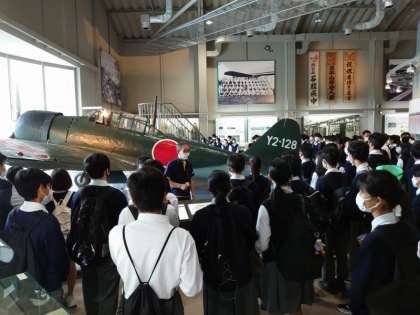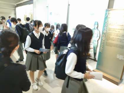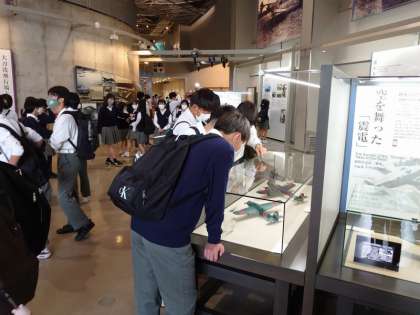 館内見学の様子です。語り部さんの話が、平和についてすごく考えさせられるものだったそうで、みんな興味深く見ています。