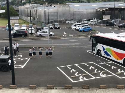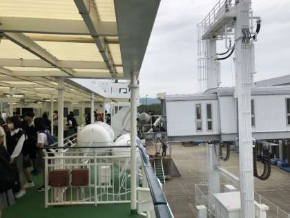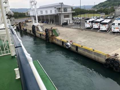 唐津港に到着しました。これから、船で壱岐島に向かいます。お世話になったバスガイドさんに見送られ、乗船します。
