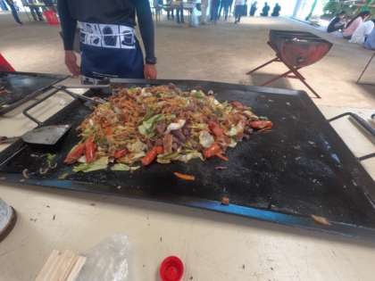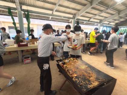 昼食はバーベキュー。屋外で、みんなで食べるBBQは格別です。