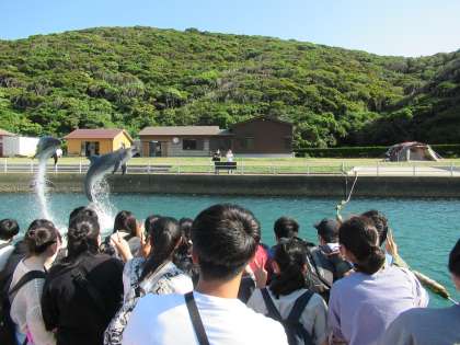 イルカパークの様子です。イルカに餌をあげることが出来ます。イルカと一緒に記念撮影もしました。