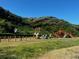 イルカパークは広大で、アスレチックもあります。果敢にチャレンジしています。
