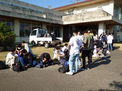 マリン体験終了後、着替えてまったりとしています。心地よい疲れがあるようです。