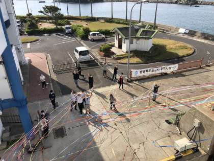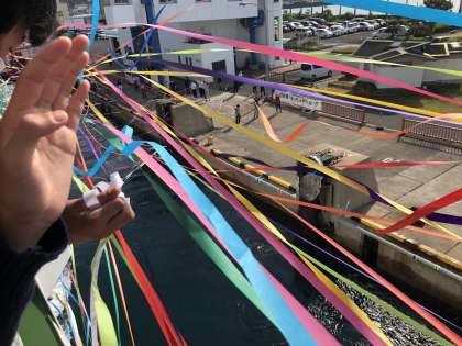 出港時の様子です。テープセレモニーで、温かくお見送りいただきました。本当にお世話になりました。