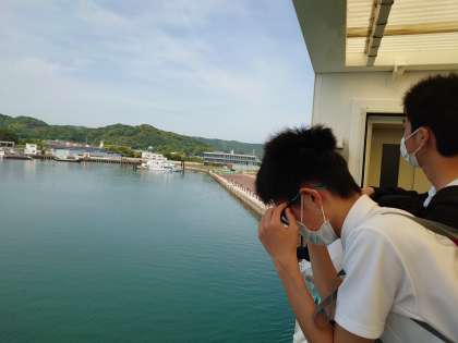 唐津東港に到着します。フェリーには、地元の人たちもたくさん乗ってらっしゃいました。生徒たちは元気です。