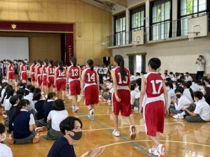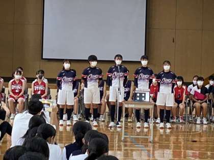 本日5限、夏季大会激励会がありました。1年生はリモート参加、2,3年生は体育館に集合し、全クラスに向けて選手たちが決意を述べました。