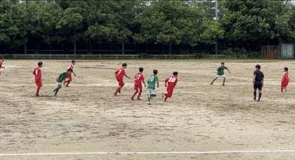 7月10日(日),大枝中学校でサッカー部の夏季大会が行われました。前日の雨で,グラウンドの状態がよくない中、強豪校に対して果敢に挑戦し,また相手チームのゴールを何度止めるプレーが見られました。結果は0対3で敗退となりましたが,粘り強く戦っている姿がとても素晴らしかったです。