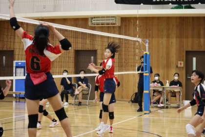 2セット目は音羽のリードで始まり、相手校も負けじと追い上げ、デュースとなります。どちらもねばり強く、得点し続けた結果、27対29で音羽の勝利。最終戦へと持ち込みます。