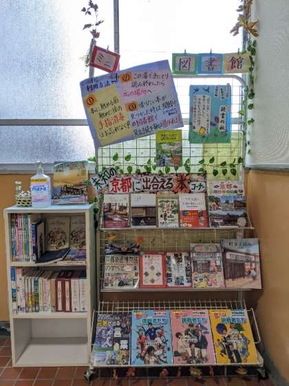 本をもっと身近に、そして、本を通して自然や四季をより深く感じてもらおうと、いこいの間設置の「ミニ図書館」が、この度リニューアルしました。新しい京都の魅力に迫る「京都本コーナー」や「スポーツ」「天文」「食」「手芸」など、様々なジャンルの本が並んでいます。2階図書館の入り口には、秋の夜長の読書にもってこいの本を集めました。