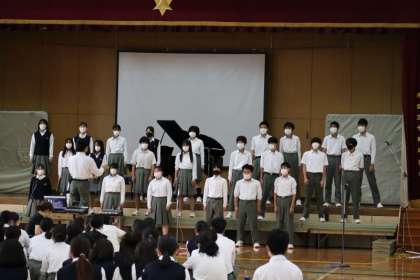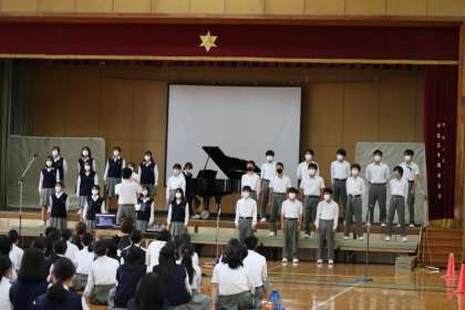 5時間目には3年生のリハーサルが行われました。最初で最後の合唱コンクール。気合いが入ります。3年生とあって、進行役は司会担当の生徒が務めます。歌は、どれも難曲ですが、今まで練習してきた自信があるから大丈夫。緊張からか、いつも廊下に響き渡るのびのびとした歌声より、わずか小さめだったかも知れません。「歌だけでなく、所作やマナーも含め、すべてにおいて最高の合唱にしてください。」と講評がありました。